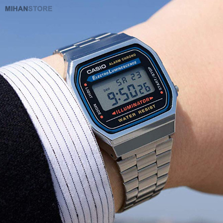 بسیاری از ما تجربهی استفاده از ساعت کامپیوتری را در همان دوران کودکی داشتهایم. ساعت مچی دیجیتالی کاسیو مدل A159 از شرکت معروف و سرشناس کاسیو یک ساعت دیجیتالی است و ظاهر منحصر به فردش شاید ما را به یاد دهههای گذشته بیاندازد. تفاوتی نمیکند که این ساعت را یک خانم استفاده کند و یا یک آقا آن را به دست خودش ببندد، زیرا ساعتهای دیجیتالی معمولا برای استفادهی هر دو جنسیت خانم و آقا ساخته میشوند. ساعت مچی دیجیتالی کاسیو مدل A159 سبک محسوب می شود و با داشتن قابلیتهایی نظیر تقویم که تاریخ روز ماه و روز هفته را نمایش میدهد، داشتن تایمر، آلارم، نور پسزمینه و بند استیل و ضد زنگ، با قیمتی مناسب از طرف شرکت کاسیو عرضه شده است تا کسانی که میخواهند ساعتی داشته باشند که علاوه بر قابلیتهای زیادی که دارد قیمت مناسب و پایینی داشته باشد بتوانند آن را انتخاب کنند.