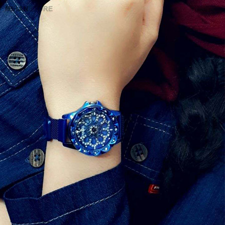 ساعت مچی Chanel مدل Rotation دارای جنس بند فلز قابل انعطاف و البته در رنگ های متنوع است. قفل ساعت مچی زنانه به صورت آهنربایی (مگنتی) می باشد که استفاده آن را بسیار راحت می کند و البته ظاهر شکیلی به محصول بخشیده است. نگین های بسیار زیبایی در این ساعت کار شده که جلای خاصی به وجاهت آن بخشیده است. از ویژگی های منحصر به فرد این ساعت مچی این است که صفحه ساعت با جا به جایی، حرکت می کند.