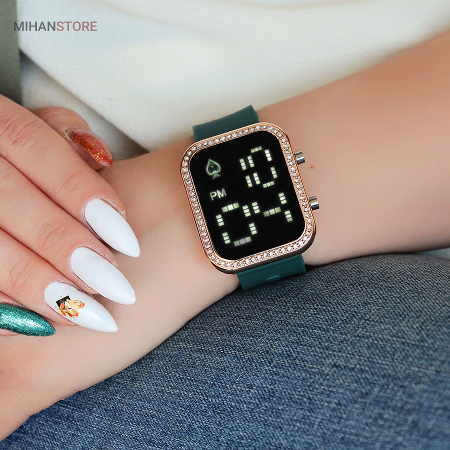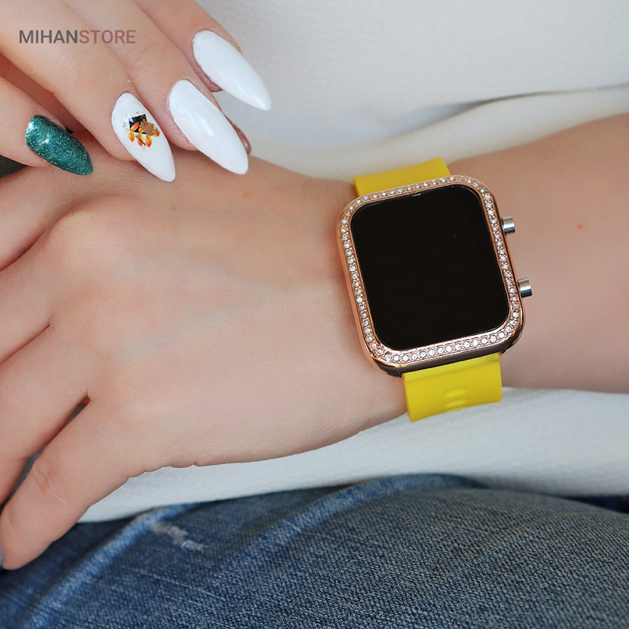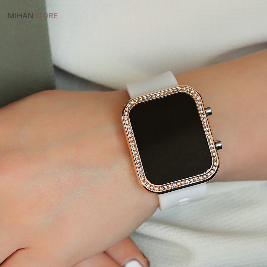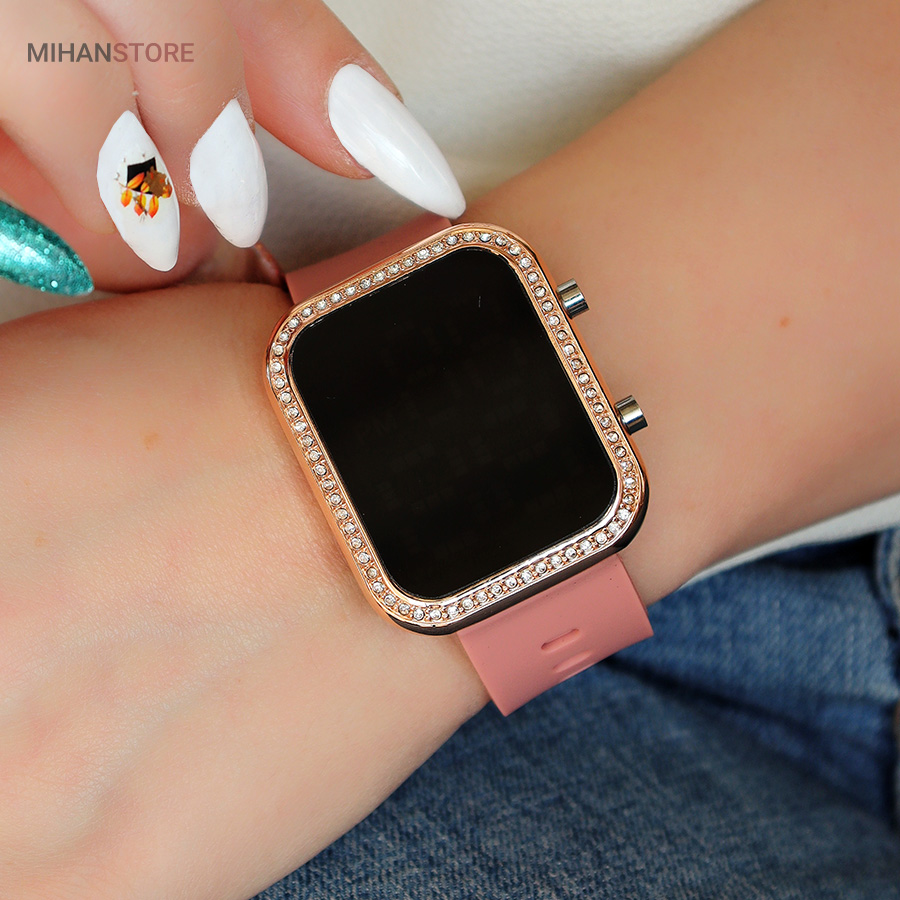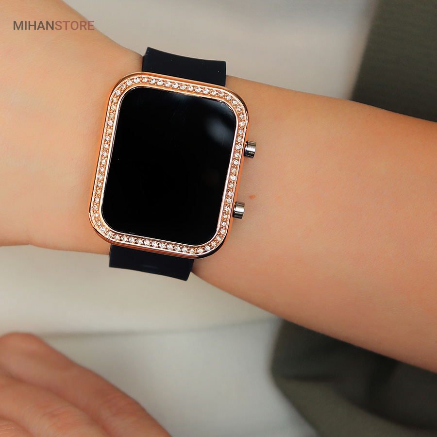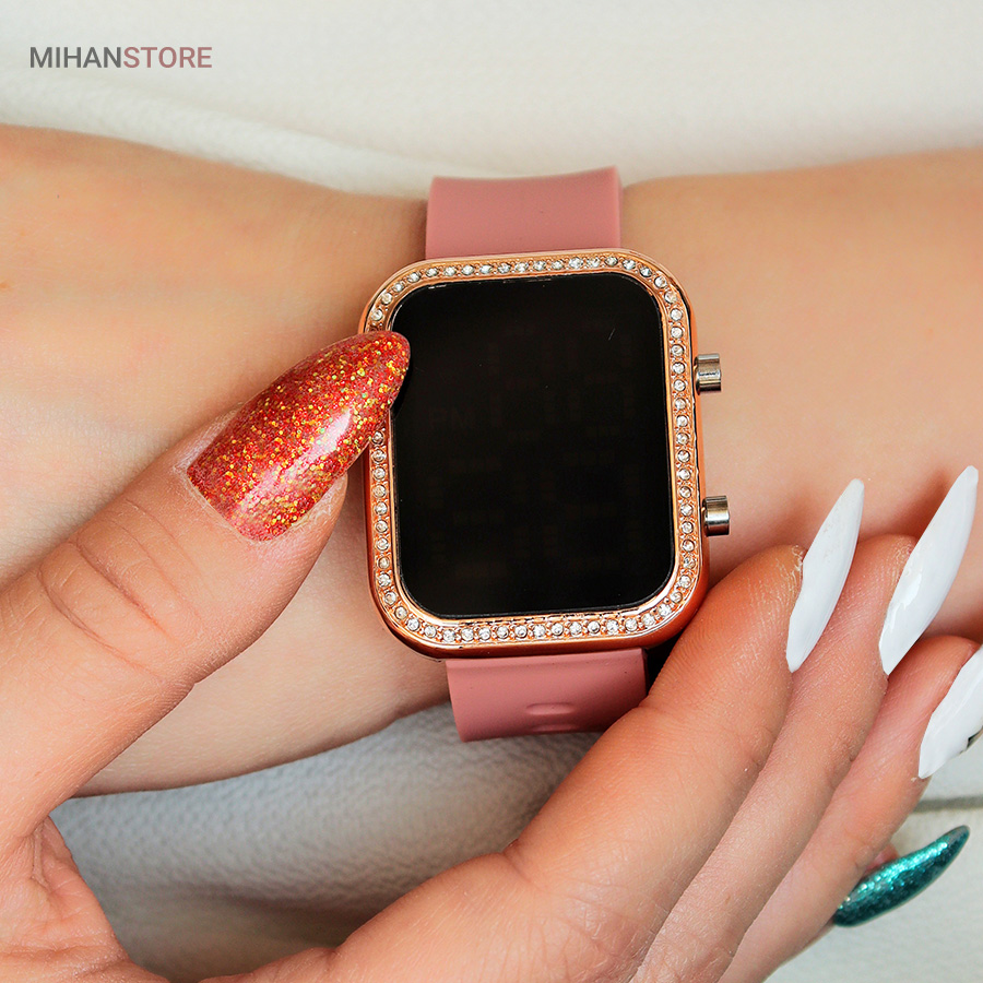 ساعت مچی از قدیم تا امروز یکی از ابزار های سنجش زمان بوده و هست اما تفاوتی که میتوانیم در ساعت مچی های امروزه حس کنیم، اهمیت وجود آنها در استایل هر شخص است. اگر که شما کمی به نوع و سبک لباس پوشیدنتان اهمیت میدهید و میخواهید در نگاه اطرافیان یک شخص ایده آل باشید، پس باید ساعت مچی را به عنوان بخشی از استایل تان بدانید و هنگام خرید ساعت مچی به سبک استایل خودتان توجه کنید. ساعت مچی بیانگر دقت و ارزشی است که شما به استایل خود قائل هستید.این محصول یکی از جذابترین ساعت های ال ای دی موجود در بازار است که طرح اپل واچ طراحی شده است. صفحه نمایشی و مستطیل شکل ساعت در ابعاد 33 × 40 میلی‌متر طراحی شده و ضخامت آن در قسمت بدنه 10 میلی‌متر است.نگین های زیبا طراحی شده دور بدنه ساعت جذابیت آن را دو چندان کرده. این ساعت دارای وزن سبک است و سنگینی زیادی روی مچ دست شما ندارد.صفحه بسیار زیبا و شفاف که با لمس دکمه کنار ساعت صفحه نمایش به شکلی زیبا پدیدار میشود، مزیت جالب این ساعت با نمونه های مشابه در صفحه نمایش آن است که اعداد پنل دیجیتالی ندارند و دارای نمایشگر جذاب فول اسکرین با اعداد بزرگ و شفاف است، بند این ساعت سلیکونی است و قفل آن سگکی طراحی شده که مناسب هر سایزی است. این ساعت همراه با جعبه کادویی شکیل ارسال میشود در رنگ های متنوع و جذاب عرضه شده است که در سبد خرید می توانید رنگ مورد نظر را انتخاب کنید.