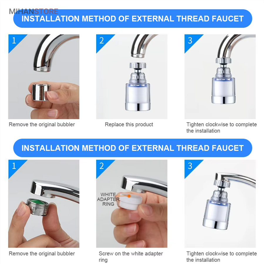 سازگاری گسترده: مناسب برای ۹۹% شیرهای آب استاندارد با سری ۲۲ میلی‌متری (بیرونی) و ۲۴ میلی‌متری (داخلی) + آداپتور جهانی برای شیرهای ۱۴ تا ۲۳ میلی‌متر.