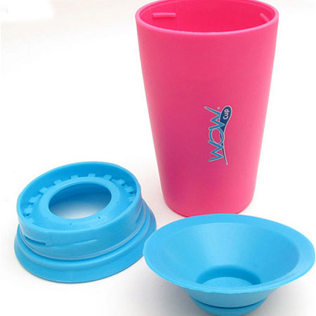 لیوان Wow Cup را می توانید به صورت 360 درجه بدون آن که قطره ای از مایع درون آن، به بیرون بریزد بچرخانید. مکانیسم نوآورانه لیوان با درپوشی دولایه که تنها با فشردن لب روی لایه بیرونی درپوش لیوان، مایع خارج می‌شود که این امر اجازه هدر رفتن و ریختن نوشیدنی را نمی‌دهد. از دیگر ویژگی های این لیوان دارا بودن تشتک سر پلاستیکی می باشد که مانع از آسیب دیدن و کج شدن دندان های کودک شما می شود. همچنین نوع طراحی و رنگ های شاد این محصول کودک شما را تشویق به نوشیدن مایعات خواهد کرد.